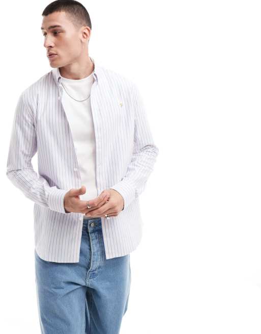 Farah - Brewer - Gestreept overhemd met lange mouwen in blauw en roze