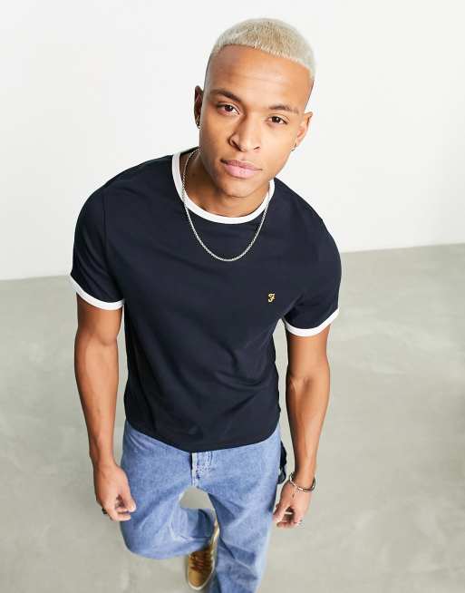 Farah - Groves - Katoenen T-shirt met gekleurde randjes in echt marineblauw