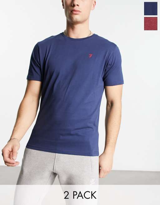 Farah - Set van 2 T-shirts in bordeauxrood en marineblauw