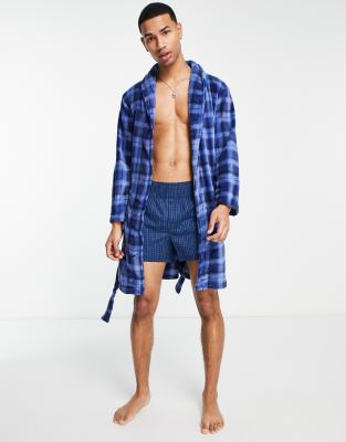 Farah - Turvey - Badjas in marineblauw en groen geruit
