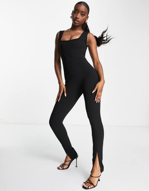 Femme Luxe - Jumpsuit met vierkante hals in zwart