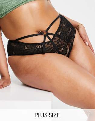 Figleaves Curve - Amore - Slip met hoge taille, kant en visnetdetail in zwart