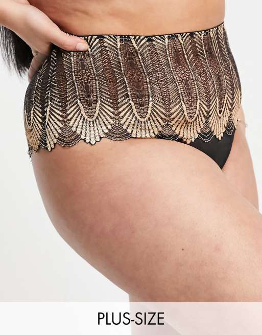 Figleaves Curve - Angel - Slip met hoge taille en waaiervormig kant in roségoud