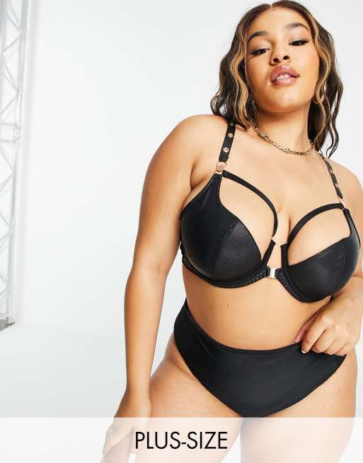 Figleaves Curve - Envy - Beha van imitatieleer met sluiting aan de voorkant en visnetdetail in zwart