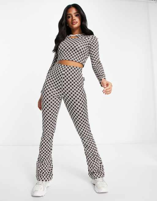 Fila - Flare-broek met retro print in bruin