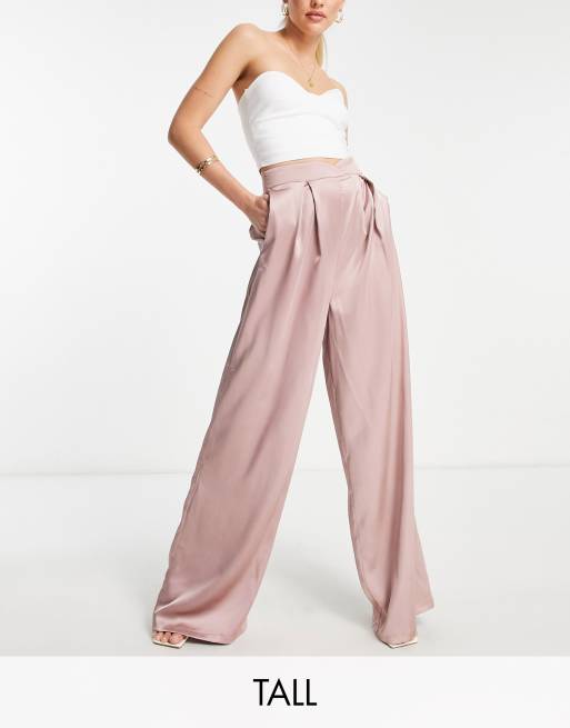 First Distraction the Label Tall - Satijnen broek met hoge taille en wijde pijpen in gemêleerd roze