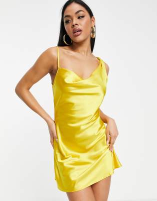 First Distraction The Label - Mini-jurk van satijn met blote schouder in oranje