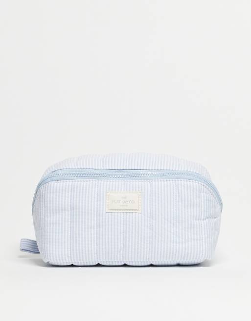 The Flat Lay Co. - Marshmallow - Plat gestreept recht make-up tasje in wit en blauw