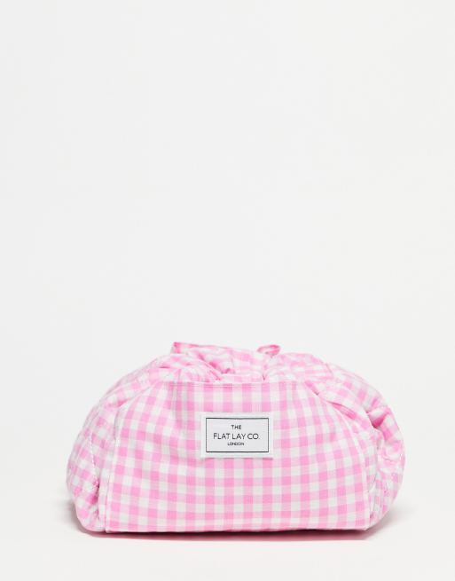 The Flat Lay Co. X ASOS - Make-uptasje met trekkoord met gingham ruit in roze, exclusief bij ASOS