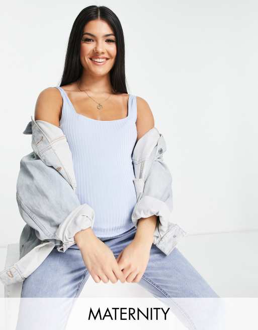 Flounce London Maternity - Aansluitend hemdje met ronde hals in babyblauw