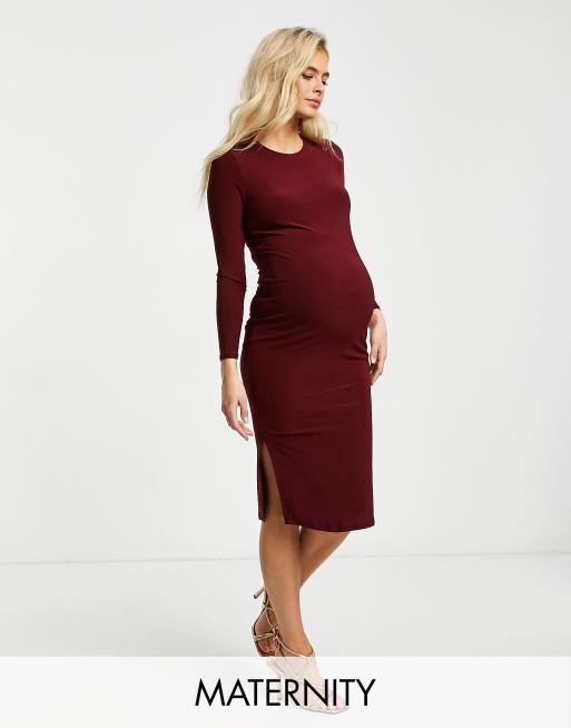 Flounce - Maternity - Basic midi jurk van jersey met lange mouwen in bordeauxrood