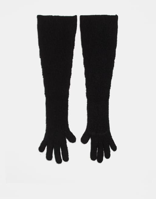 For Love & Lemons - Ruimvallende ribgebreide handschoenen in zwart