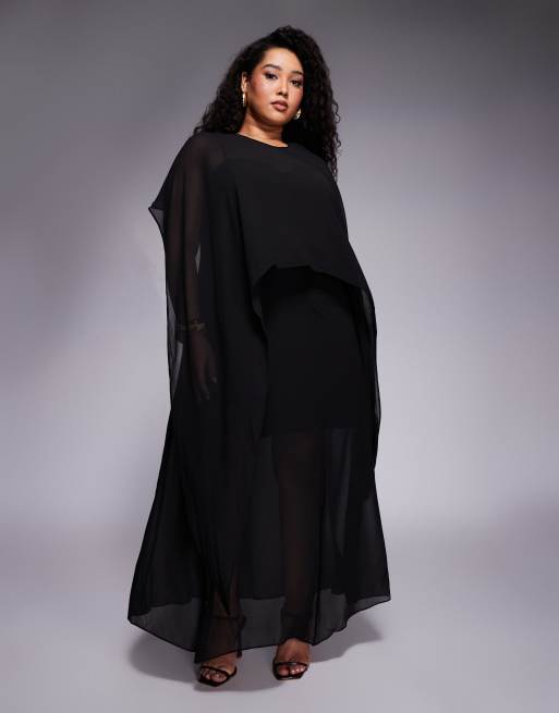Forever New - Curve - Honey - Maxi-jurk met doorschijnende cape en bandjes in zwart