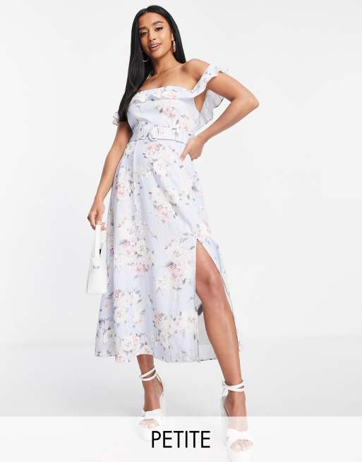 Forever New Petite - Midi-bardotjurk met riem en lichtblauwe bloemenprint