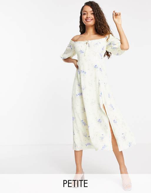 Forever New Petite - Schouderloze midi jurk in geel met fijne bloemenprint