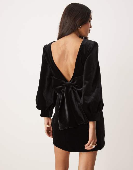 Forever New - Fluwelen mini-jurk met strik op de rug in zwart