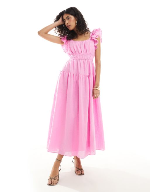 Forever New - Midaxi-jurk met ruches aan de schouder in babyroze