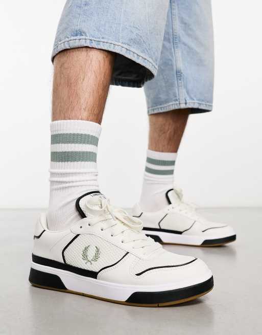 Fred Perry - B300 - Sneakers van leer en mesh in sneeuwwit