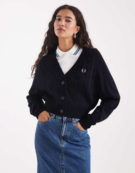 Fred Perry - Gebreid vest met kabels in marineblauw