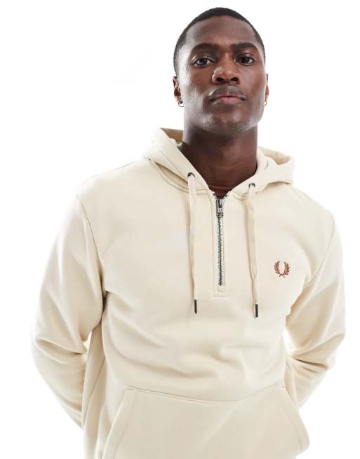 Fred Perry - Hoodie met korte rits in lichtbeige