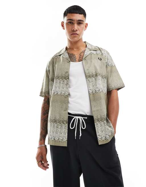 Fred Perry - Overhemd met reverskraag in abstracte soundwave-print in grijs