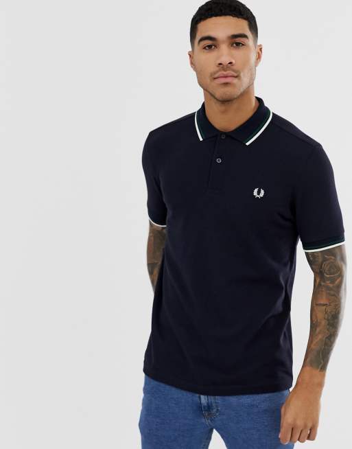Fred Perry - Poloshirt met dubbelgekleurd randje en logo in marineblauw, exclusief bij ASOS