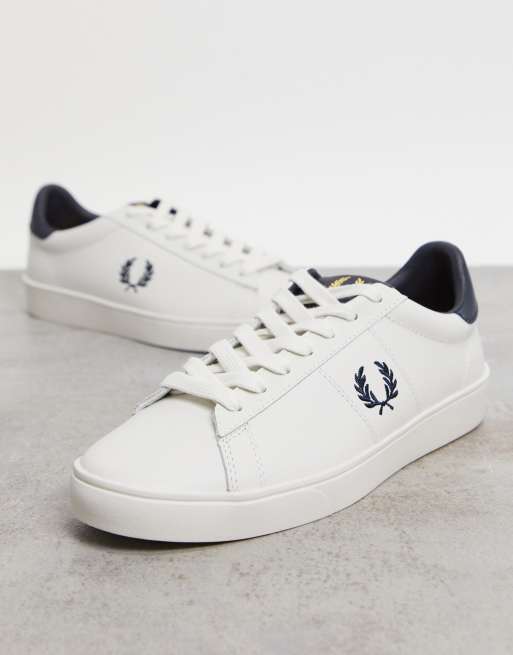 Fred Perry - Spencer - Leren sneakers in wit met marineblauw