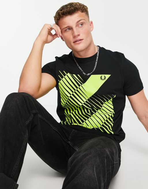 Fred Perry - T-shirt met abstracte grafische print in zwart