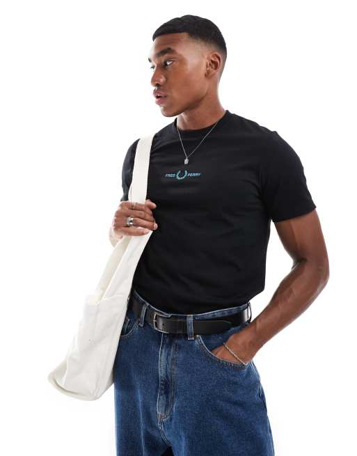 Fred Perry - T-shirt met geborduurd logo in zwart