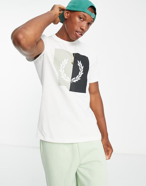 Fred Perry - T-shirt met vierkante laurierkransprint in wit