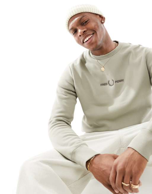 Fred Perry - Trui met geborduurd logo en ronde hals in warm beige
