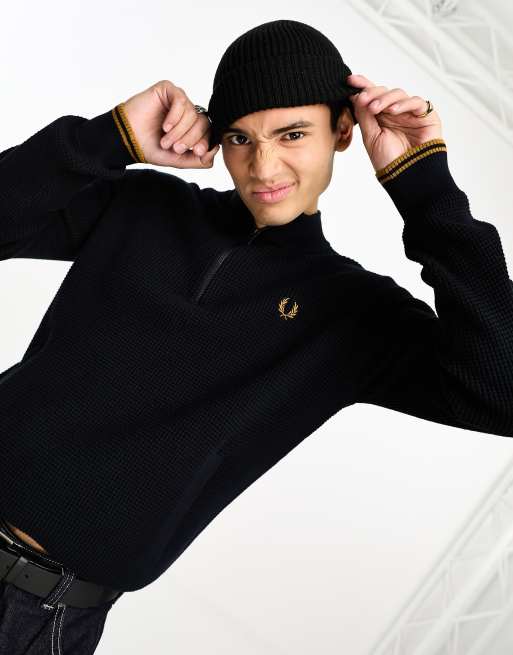 Fred Perry - Trui met wafelsteek en halve rits in marineblauw