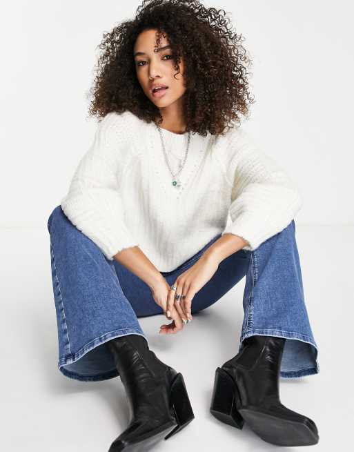 Free People - Carter - Ruimvallende gebreide trui in ivoor