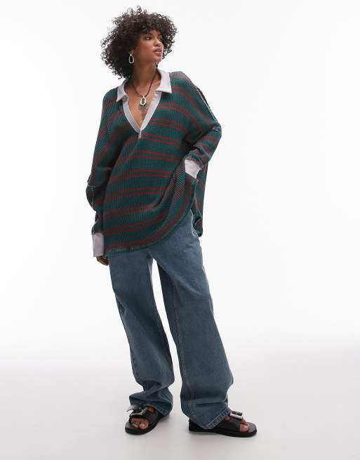 Free People - Gestreepte polotrui in groen