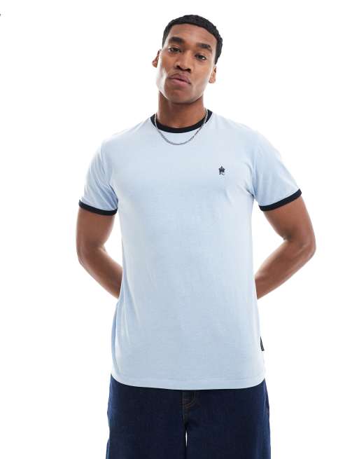 French Connection - T-shirt met gekleurde biezen in hemels blauw en marineblauw