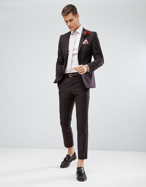 French Connection - Skinny kostuum in donkerbordeauxrood
