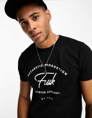 FCUK - Established - T-shirt met print in zwart