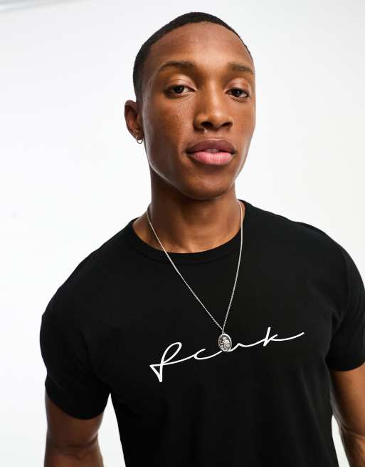 FCUK - T-shirt met gekrabbeld logo in zwart