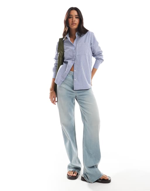 French Connection - Gestreept popover overhemd met knopen in blauw en wit