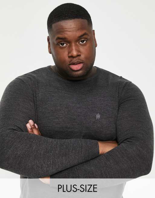French Connection Plus - Zachte trui met ronde hals en logo in antraciet