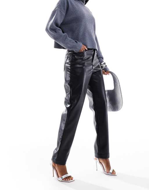 French Connection - PU broek met rechte pijpen en krok-effect in zwart