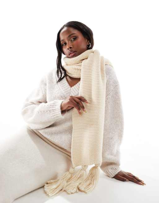 French Connection - Sjaal met kwastjes in beige
