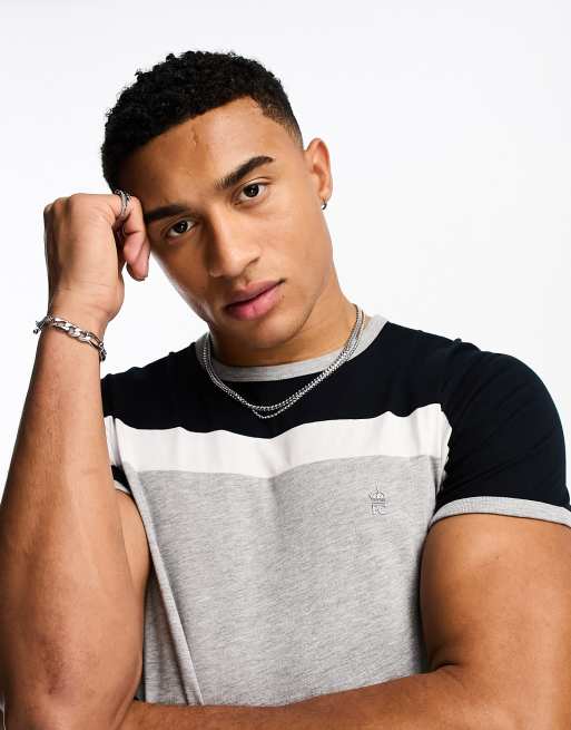 French Connection - T-shirt met kleurvlakken in lichtgrijs, wit en marineblauw