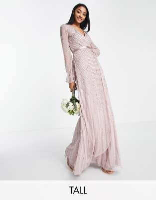 Frock And Frill Tall - Bruidsmeisjes - Lange jurk met overslag in taupe