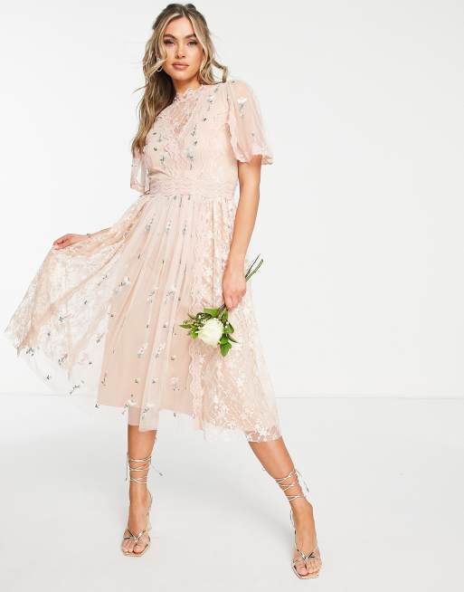 Frock And Frill - Bruidsmeisjes - Midi jurk met bloemenprint in beigeroze