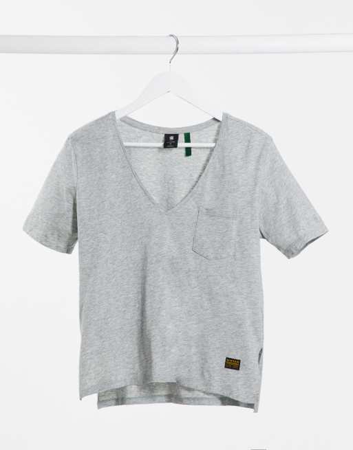 G-Star - T-shirt met V-hals en zak aan de voorkant in grijs