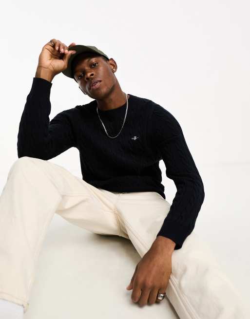 Gant - Gebreide kabeltrui van katoen met icoonlogo in marineblauw