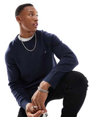GANT - Gebreide trui van tweekleurige lamswol-mix met schildlogo en raglanmouwen in gemêleerd marineblauw