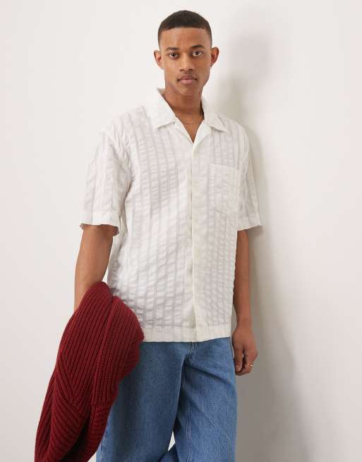 Gant - Overhemd met korte mouwen en ton-sur-ton seersucker streep in gebroken wit