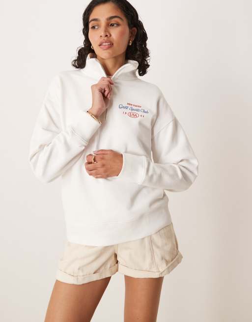 GANT - Sweatshirt met klein logo en halve rits in wit